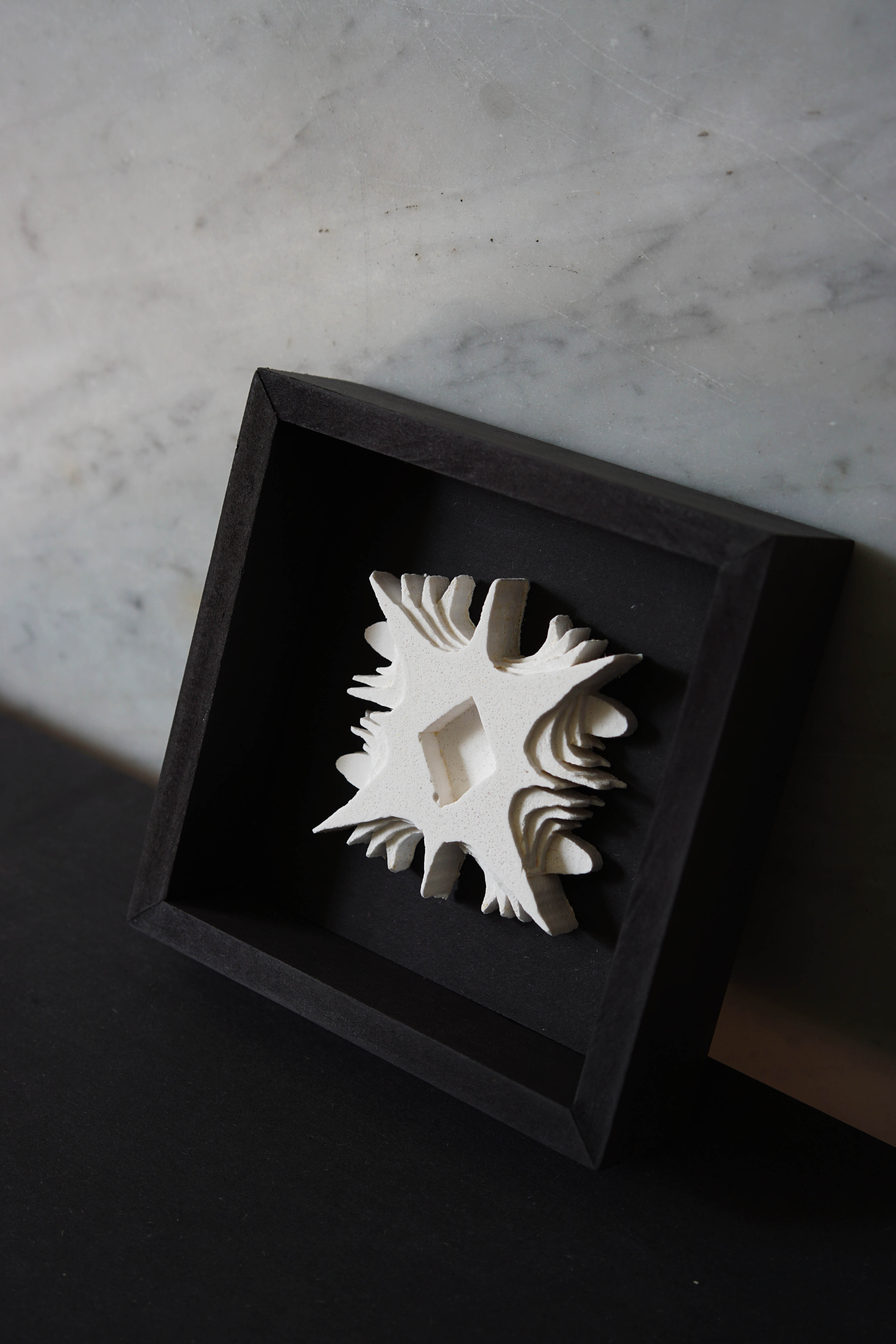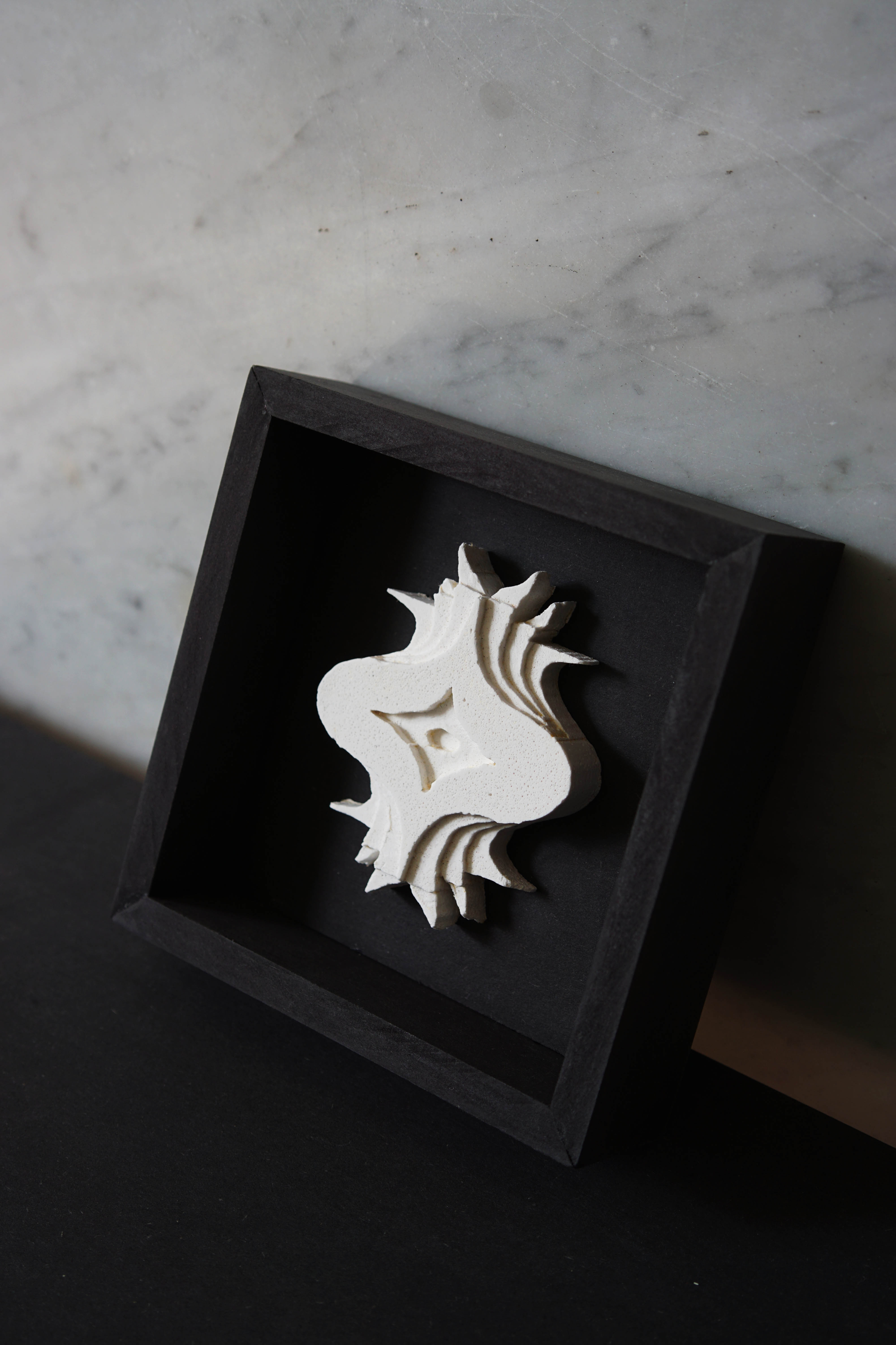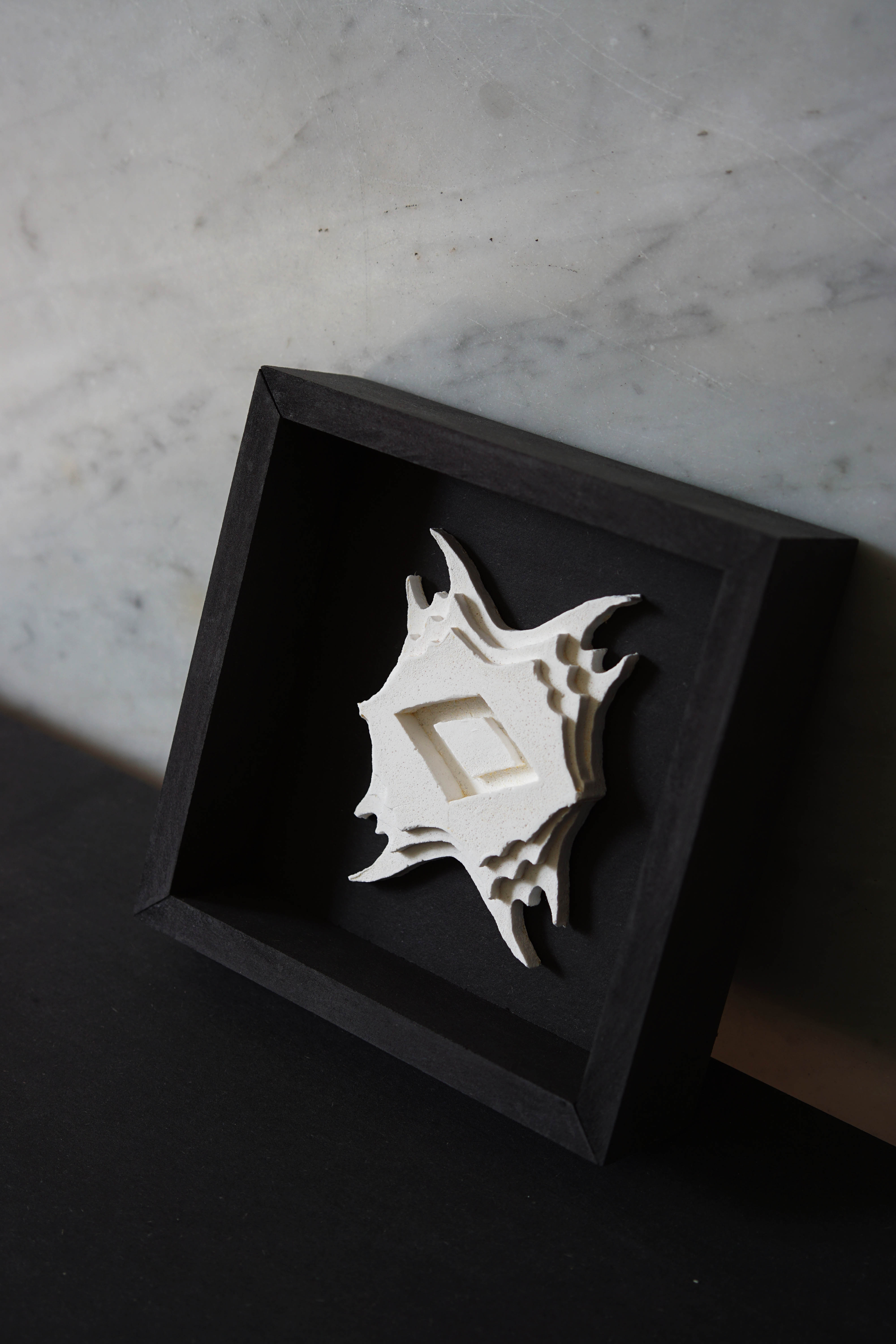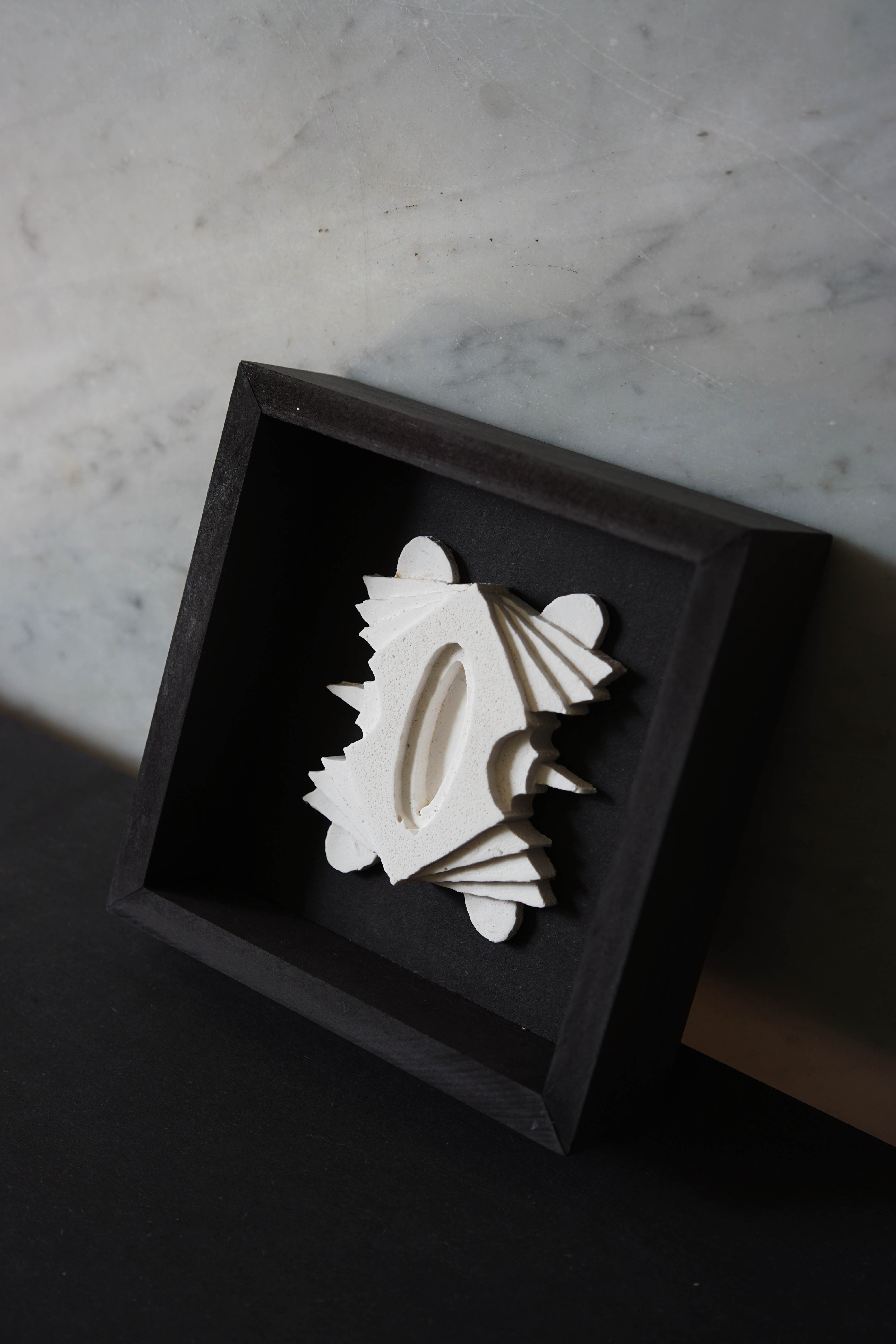 2023: Series of four unique plaster casts, framed in black MDF; each 14x14x4cm