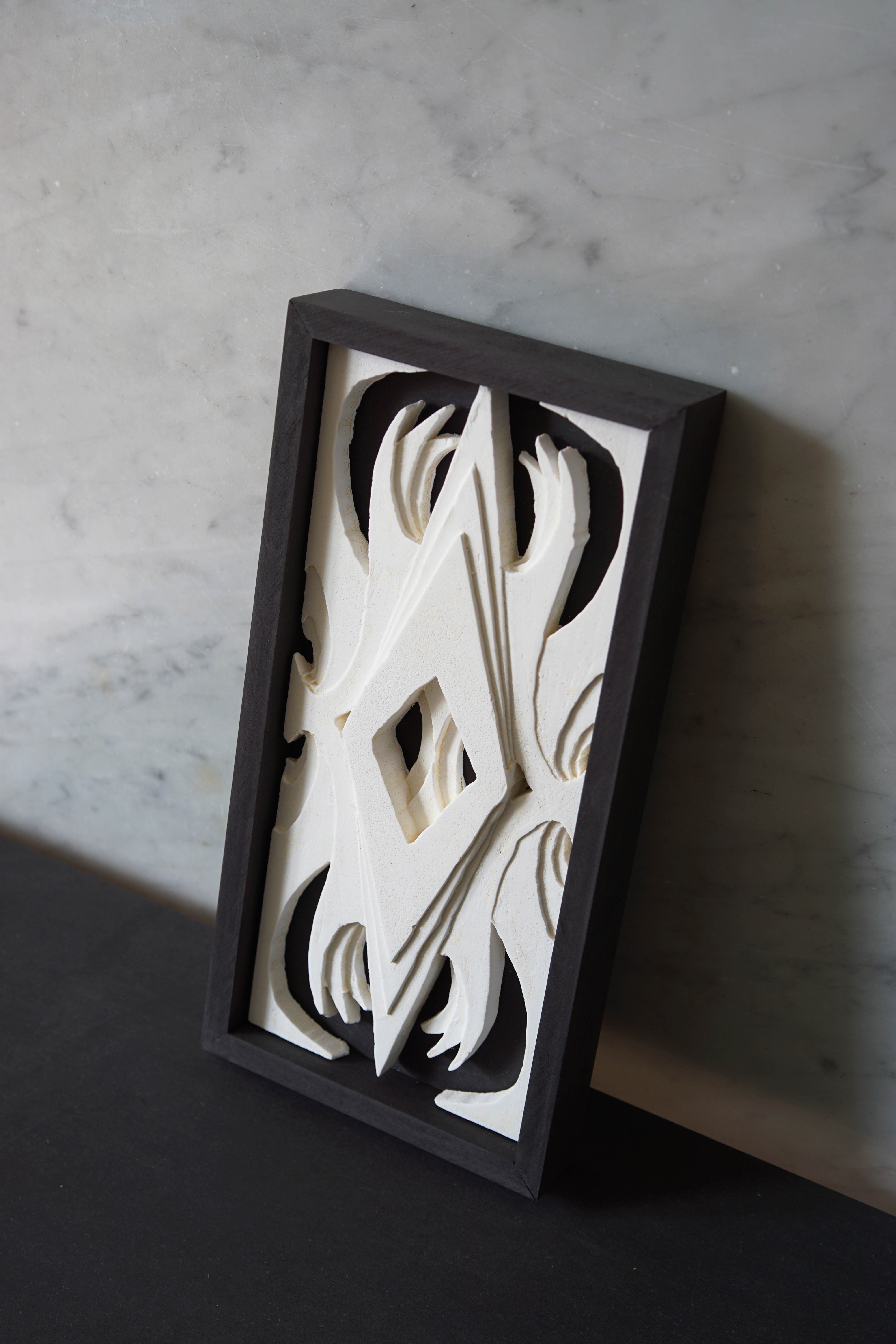 2023: Series of four unique plaster casts, framed in black MDF; each 13,5x27x4cm